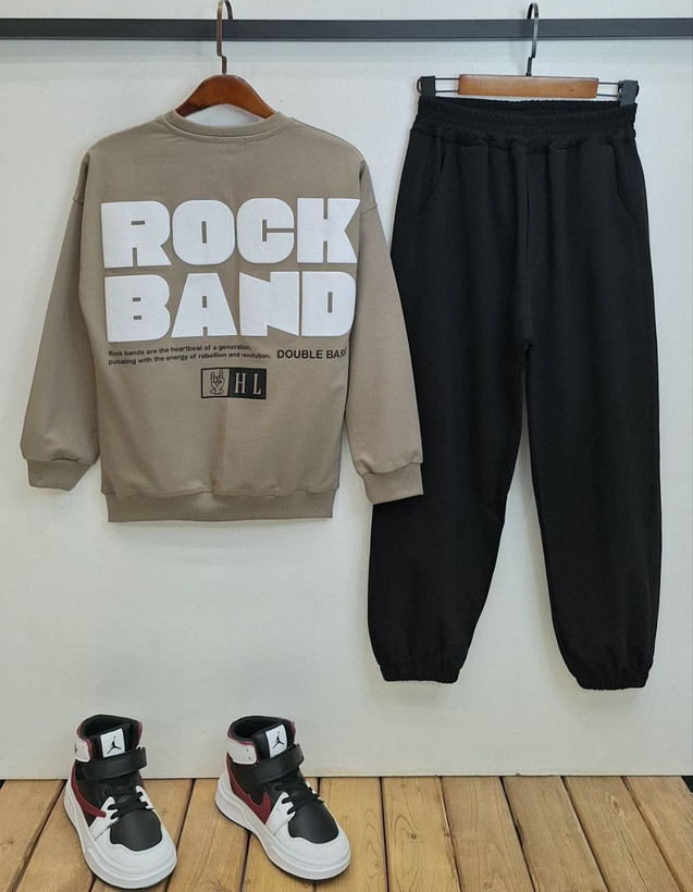 ست بلوز و شلوار بچگانه مدل ROCK BAND چاپ پفکی خارجی (شلوار جاگر)