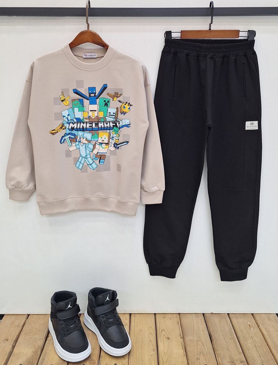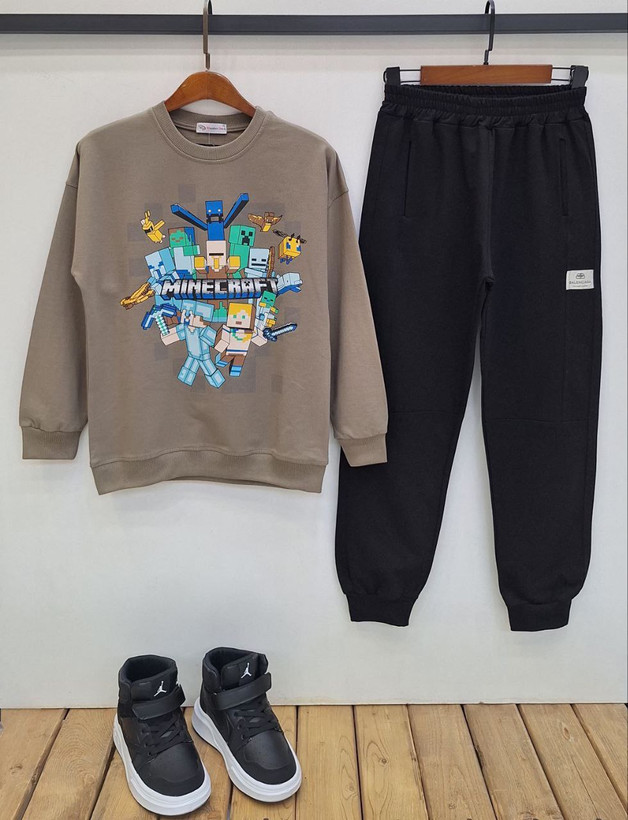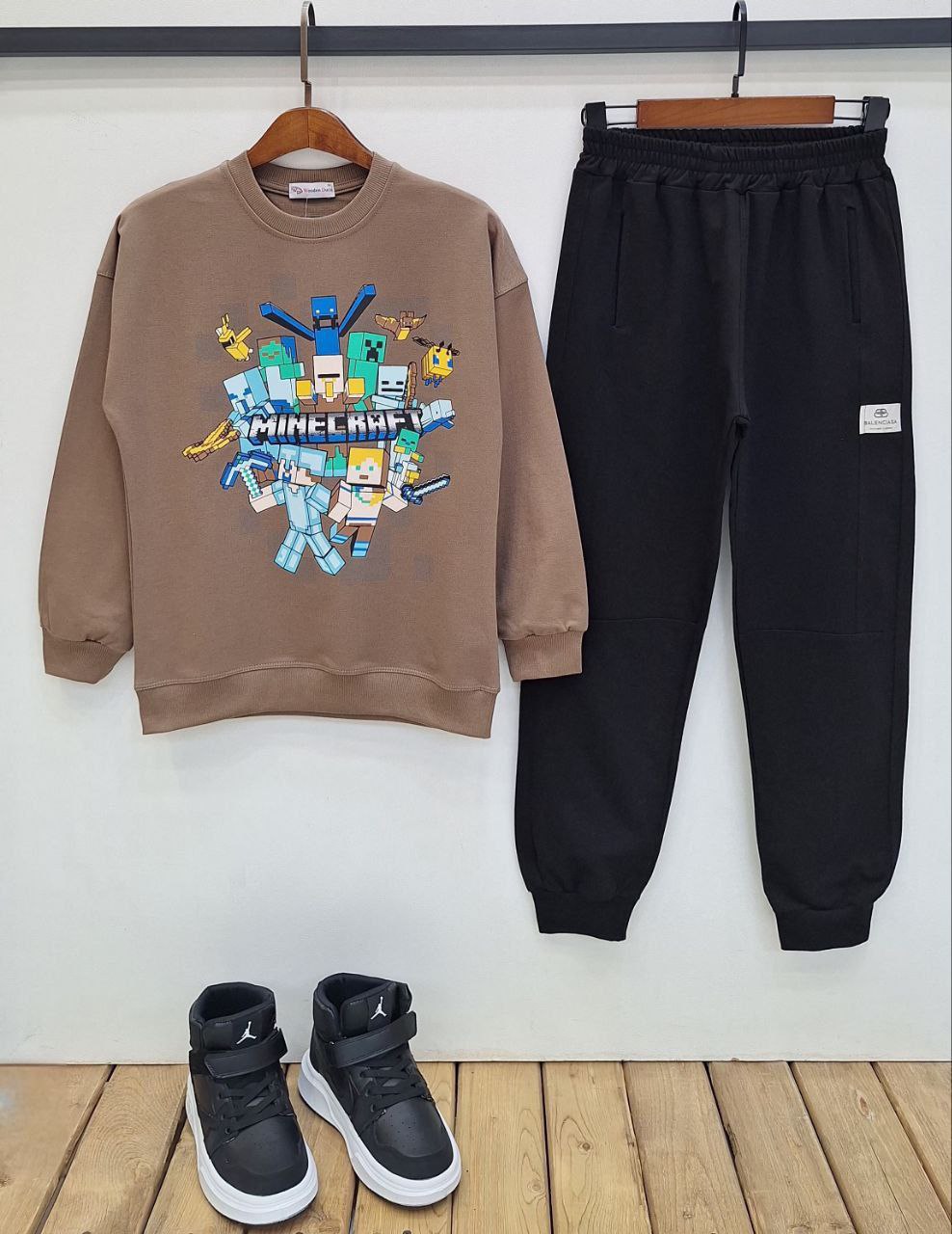 ست بلوز و شلوار بچگانه مدل Minecraft با استایل اسپرت (شلوار اسلش)